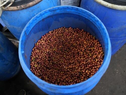 選別したコーヒーチェリーを水に浮かべ浮遊物を取り除いた後、コーヒーをモスト(コーヒーチェリーの果肉や果汁)とともに樽の中に3日間密封し嫌気性発酵をおこないます。その後コーヒーチェリーを取り出し、日陰で30日間乾燥させます。